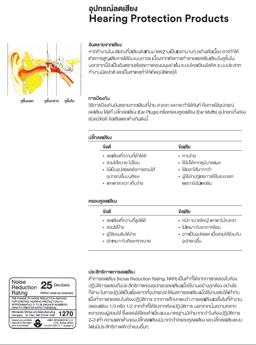 คุณสมบัติ : มีค่าการลดเสียง (Noise Reduction Rating, NRR)เท่ากับ 24 เดซิเบลเมื่อทดสอบตามมาตรฐานมาตรฐาน ANSI S3.19-1974