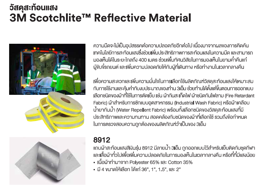 - แถบผ้าสะท้อนแสงสีเงิน รุ่น 8912 มีลายน้ำ 3เอ็ม